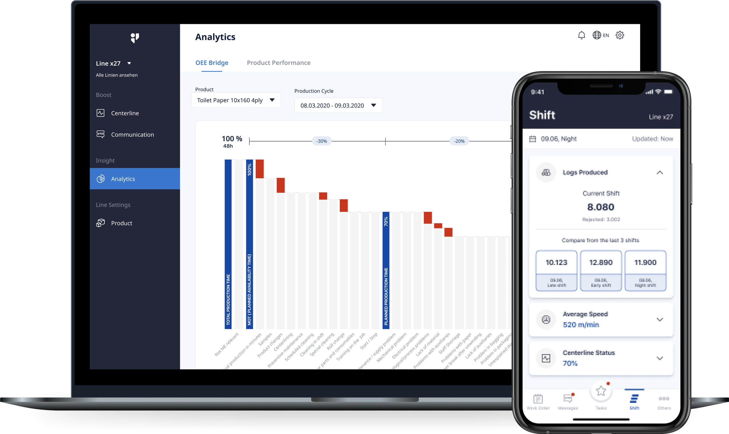 SILVA light ist wie ein Fitnesstracker für die Produktion. Es nutzt industrietaugliche Smartphones und deren eingebaute Sensoren um Laufzeiten, Stillstände, Ausbringung, Taktzeiten und mehr zu erheben.